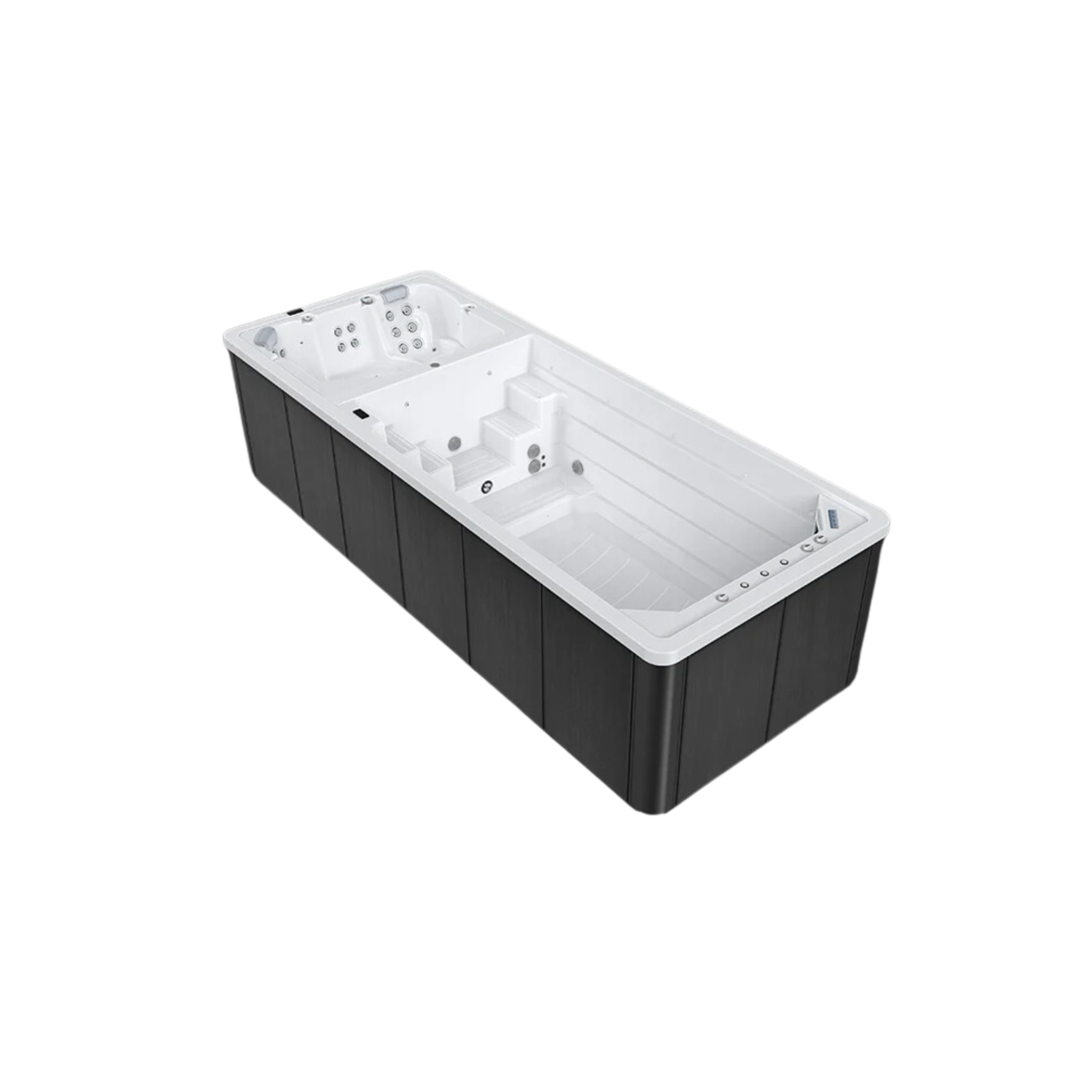 Faites l’expérience du luxe et de la polyvalence avec nos piscines à deux bassins. Nos piscines combinent harmonieusement un spa de nage, un bassin profond, un spa d’hydrothérapie et un centre d’exercice en un seul ensemble exquis. Équipé du système Pro Swim, ce spa de nage supérieur offre une expérience de nage exceptionnelle. Il comprend également des sièges ergonomiques, dotés d’une semi-chaise longue somptueusement confortable pour un massage complet du corps.